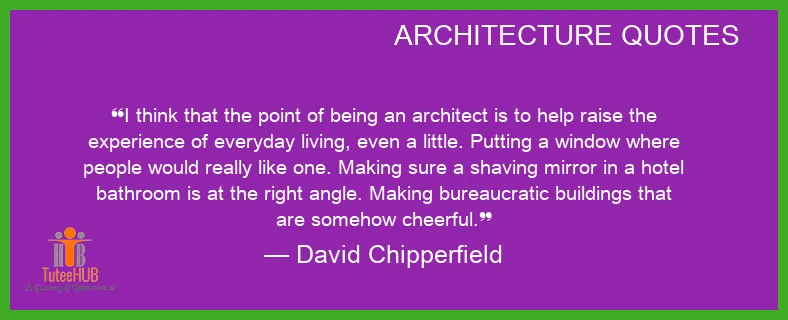 I think that the POINT of being an architect is to HELP raise the experience of everyday LIVING, even a little. Putting a window where PEOPLE would really like one. Making sure a shaving mirror in a hotel bathroom is at the right angle. Making bureaucratic buildings that are SOMEHOW cheerful.