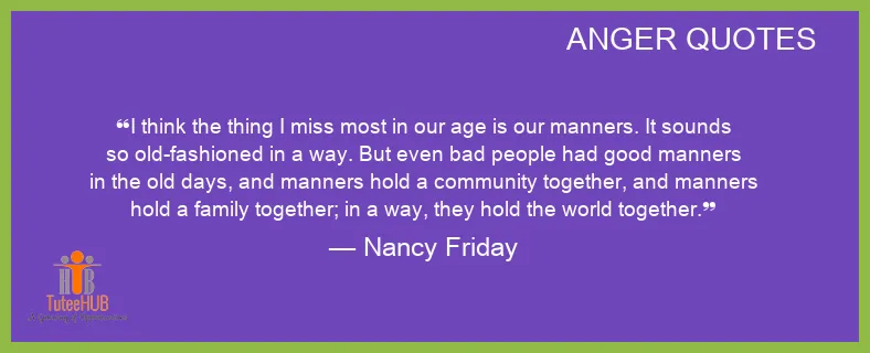 I think the thing I MISS most in our AGE is our manners. It sounds so old-fashioned in a WAY. But even bad people had good manners in the old days, and manners hold a COMMUNITY together, and manners hold a FAMILY together; in a way, they hold the world together.
