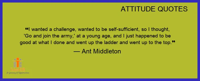I wanted a CHALLENGE, wanted to be self-sufficient, so I THOUGHT, 'Go and join the army,' at a young age, and I just HAPPENED to be good at what I done and went up the ladder and went up to the TOP.