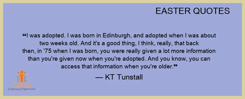 I was adopted. I was born in Edinburgh, and adopted when I was about TWO weeks OLD. And it's a good THING, I THINK, really, that back then, in '75 when I was born, you were really given a lot more information than you're given now when you're adopted. And you know, you can access that information when you're older.