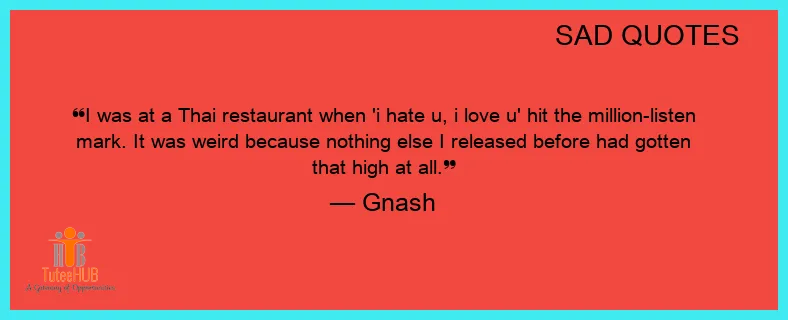 I was at a Thai RESTAURANT when 'i hate u, i love u' hit the million-listen mark. It was weird because nothing else I released before had GOTTEN that HIGH at all.