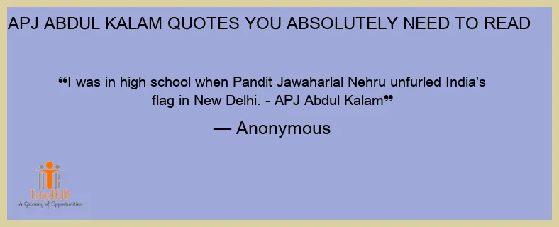 I was in high school when Pandit Jawaharlal Nehru unfurled India's flag in New Delhi. - APJ Abdul Kalam