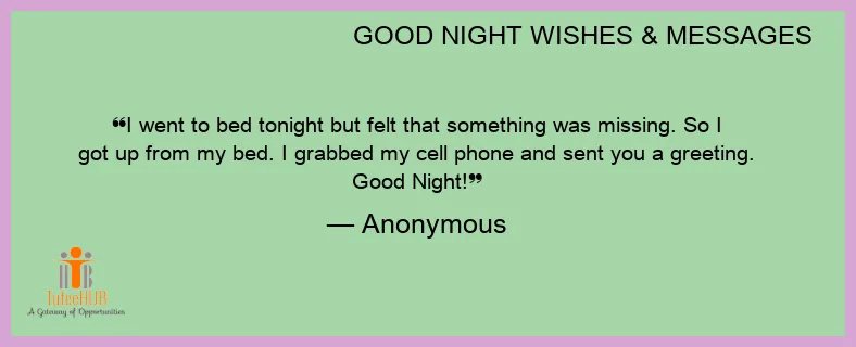 I went to bed tonight but felt that something was missing. So I got up from my bed. I grabbed my cell phone and sent you a greeting. Good Night!