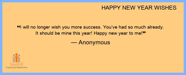 I will no longer wish you more success. You’ve had so much already. It should be mine this year! Happy new year to me!