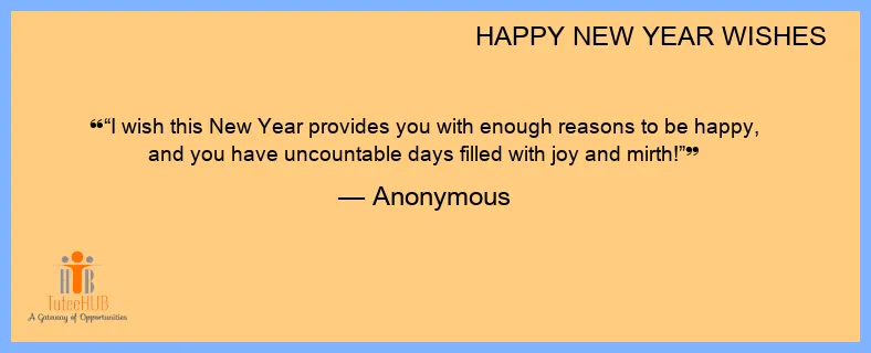 “I wish this New Year provides you with enough reasons to be happy, and you have uncountable days filled with joy and mirth!”