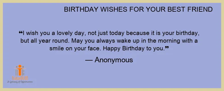 I wish you a lovely day, not just today because it is your birthday, but all year round. May you always wake up in the morning with a smile on your face. Happy Birthday to you.