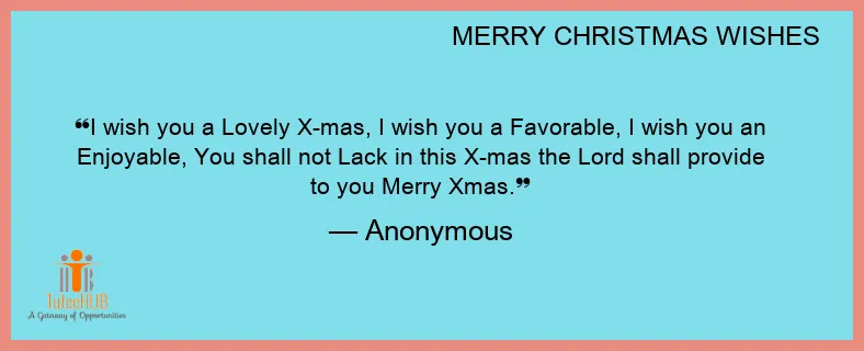 I wish you a Lovely X-mas, I wish you a Favorable, I wish you an Enjoyable, You shall not Lack in this X-mas the Lord shall provide to you Merry Xmas.