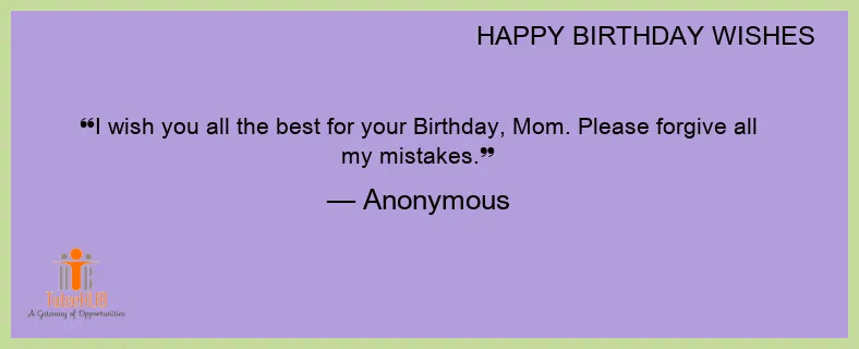 I wish you all the best for your Birthday, Mom. Please forgive all my mistakes.
