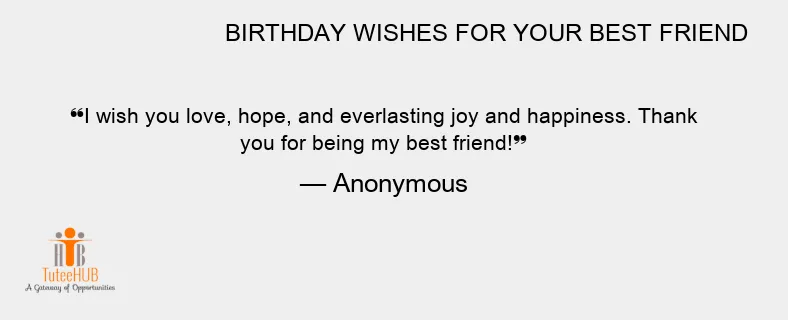 I wish you love, hope, and everlasting joy and happiness. Thank you for being my best friend!