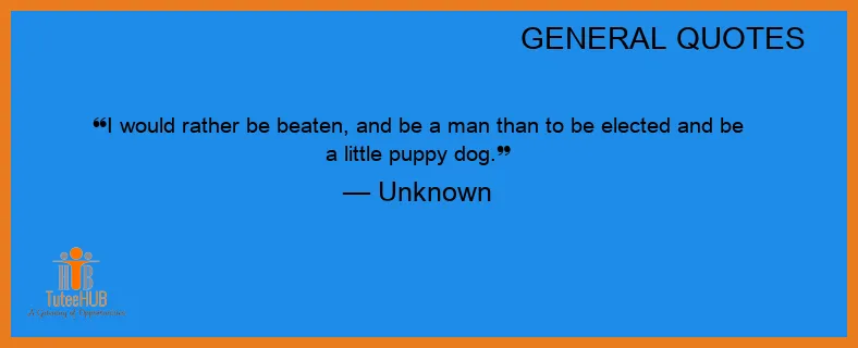 I would RATHER be beaten, and be a man than to be ELECTED and be a LITTLE PUPPY dog.