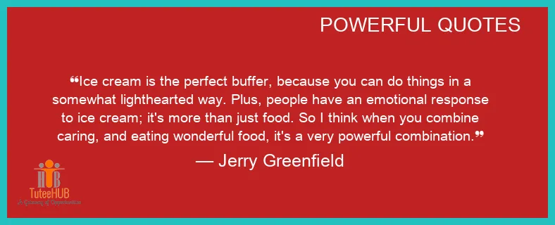 Ice CREAM is the perfect buffer, because you can do things in a somewhat lighthearted way. PLUS, people have an emotional response to ice cream; it's more than just food. So I think when you combine caring, and EATING wonderful food, it's a very POWERFUL COMBINATION.