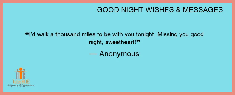 I’d walk a thousand miles to be with you tonight. Missing you good night, sweetheart!