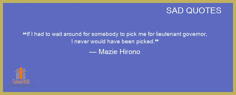 If I had to WAIT around for somebody to PICK me for lieutenant GOVERNOR, I never would have been picked.