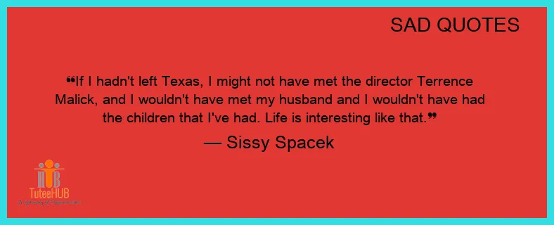 If I hadn't LEFT Texas, I MIGHT not have met the DIRECTOR Terrence Malick, and I wouldn't have met my husband and I wouldn't have had the children that I've had. Life is INTERESTING like that.