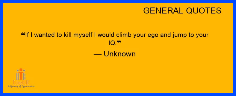 If I wanted to kill myself I would CLIMB your EGO and JUMP to your IQ.