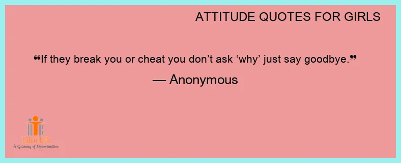If they break you or cheat you don’t ask ‘why’ just say goodbye.