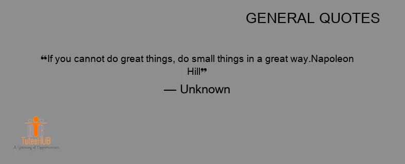 If you cannot do GREAT THINGS, do SMALL things in a great way.Napoleon HILL