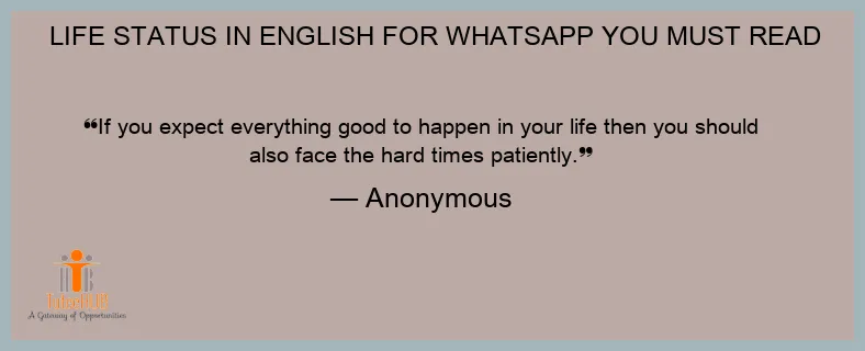 If you expect everything good to happen in your life then you should also face the hard times patiently.