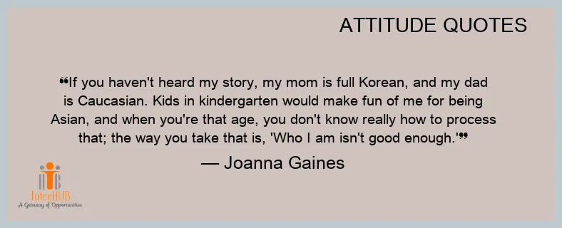 If you haven't heard my STORY, my MOM is full KOREAN, and my dad is Caucasian. Kids in kindergarten would make fun of me for being Asian, and when you're that age, you don't KNOW REALLY how to process that; the way you take that is, 'Who I am isn't good enough.'