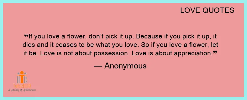 If you love a flower, don’t pick it up. Because if you pick it up, it dies and it ceases to be what you love. So if you love a flower, let it be. Love is not about possession. Love is about appreciation.