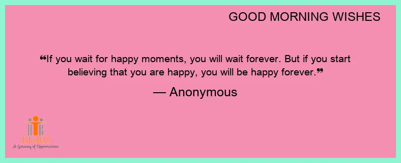 If you wait for happy moments, you will wait forever. But if you start believing that you are happy, you will be happy forever.