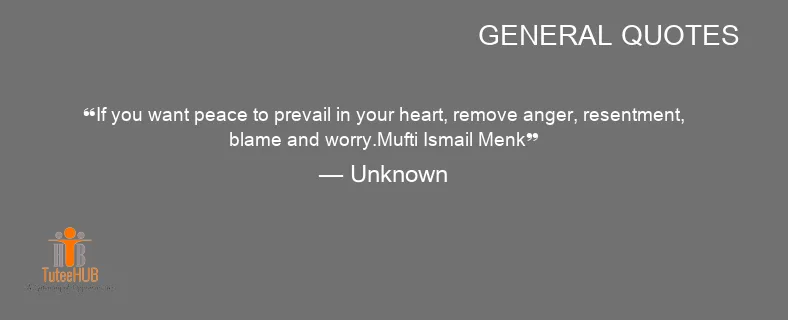 If you want PEACE to PREVAIL in your heart, REMOVE ANGER, resentment, blame and worry.Mufti Ismail Menk