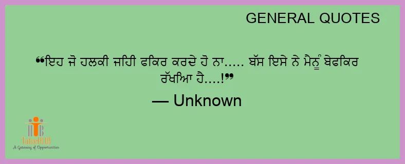 ਇਹ ਜੋ ਹਲਕੀ ਜਿਹੀ ਫਿਕਰ ਕਰਦੇ ਹੋ ਨਾ..... ਬੱਸ ਇਸੇ ਨੇ ਮੈਨੂੰ ਬੇਫਿਕਰ ਰੱਖਿਆ ਹੈ....!