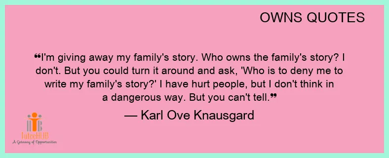 I'm giving AWAY my family's story. Who owns the family's story? I don't. But you could turn it around and ASK, 'Who is to deny me to WRITE my family's story?' I have hurt people, but I don't think in a dangerous way. But you can't tell.