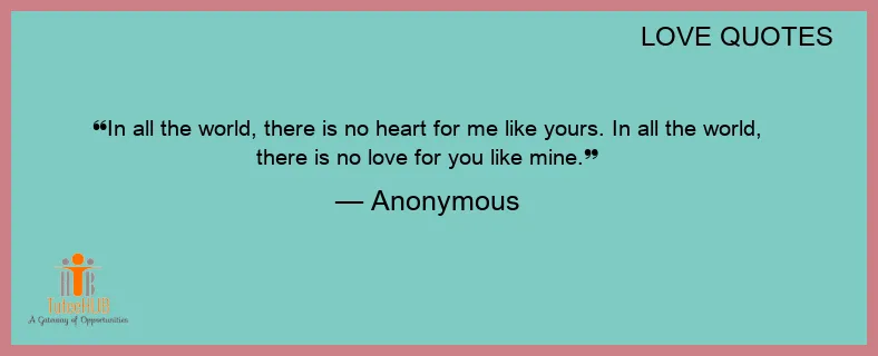 In all the world, there is no heart for me like yours. In all the world, there is no love for you like mine.