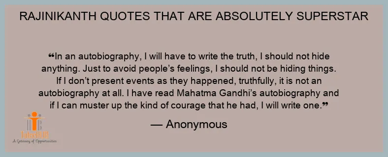 In an autobiography, I will have to write the truth, I should not hide anything. Just to avoid people’s feelings, I should not be hiding things. If I don’t present events as they happened, truthfully, it is not an autobiography at all. I have read Mahatma Gandhi’s autobiography and if I can muster up the kind of courage that he had, I will write one.
