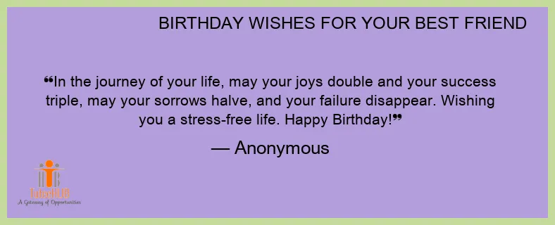 In the journey of your life, may your joys double and your success triple, may your sorrows halve, and your failure disappear. Wishing you a stress-free life. Happy Birthday!