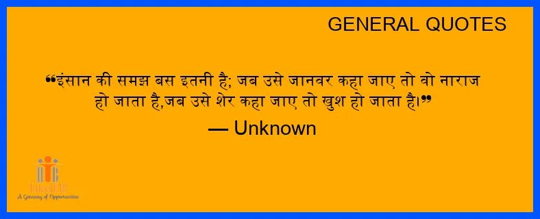 इंसान की समझ बस इतनी है; जब उसे जानवर कहा जाए तो वो नाराज हो जाता है,जब उसे शेर कहा जाए तो खुश हो जाता है।