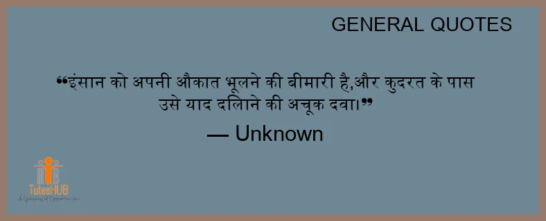 इंसान को अपनी औकात भूलने की बीमारी है,और कुदरत के पास उसे याद दिलाने की अचूक दवा।
