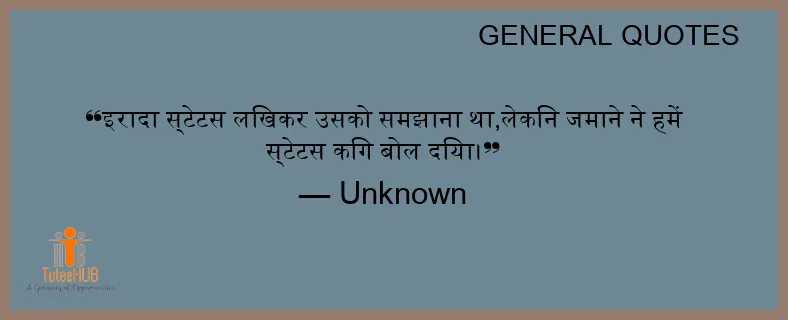 इरादा स्टेटस लिखकर उसको समझाना था,लेकिन जमाने ने हमें स्टेटस किंग बोल दिया।