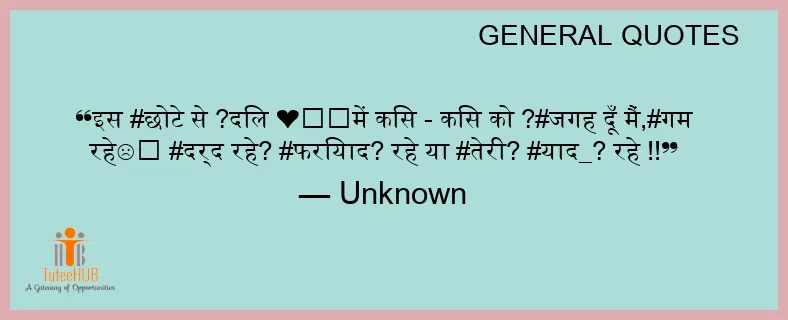 इस #छोटे से ?दिल ❤️️में किस - किस को ?#जगह दूँ मैं,#गम रहे☹️ #दर्द रहे? #फरियाद? रहे या #तेरी? #याद_? रहे !!