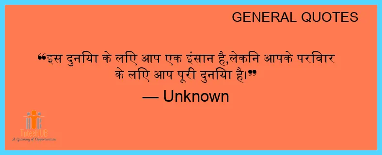 इस दुनिया के लिए आप एक इंसान है,लेकिन आपके परिवार के लिए आप पूरी दुनिया है।