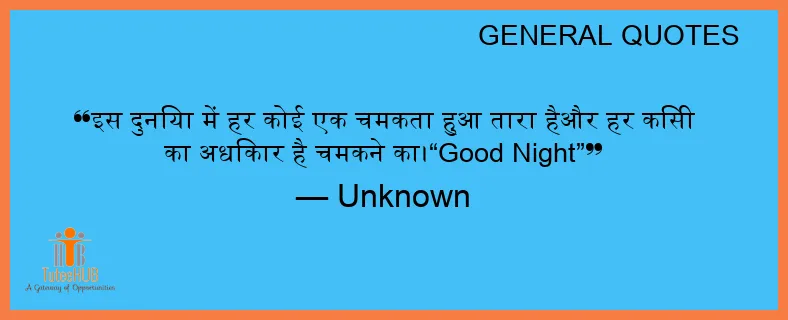 इस दुनिया में हर कोई एक चमकता हुआ तारा हैऔर हर किसी का अधिकार है चमकने का।“Good Night”