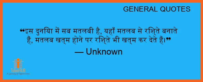 इस दुनिया में सब मतलबी है, यहाँ मतलब से रिश्ते बनाते हैं, मतलब खत्म होने पर रिश्ते भी खत्म कर देते हैं।