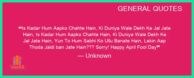 Is Kadar HUM Aapko Chahte Hain, Ki DUNIYA Wale Dekh Ke Jal Jate Hain, Is Kadar Hum Aapko Chahte Hain, Ki Duniya Wale Dekh Ke Jal Jate Hain, Yun To Hum Sabhi Ko Ullu Banate Hain, Lekin Aap THODA Jaldi ban Jate Hain??? Sorry! Happy April FOOL Day