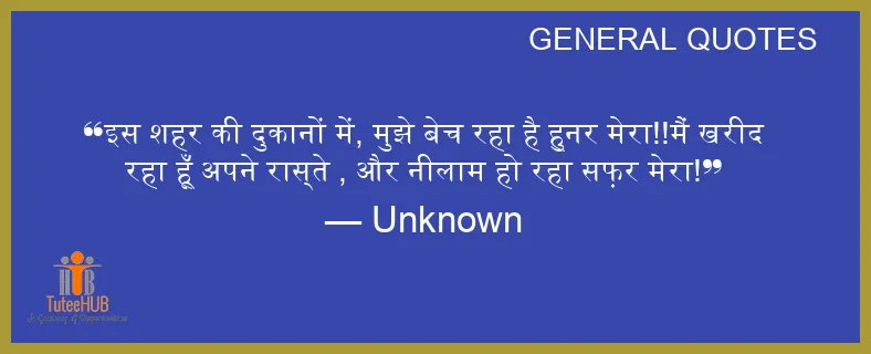 इस शहर की दुकानों में, मुझे बेच रहा है हुनर मेरा!!मैं खरीद रहा हूँ अपने रास्ते , और नीलाम हो रहा सफ़र मेरा!