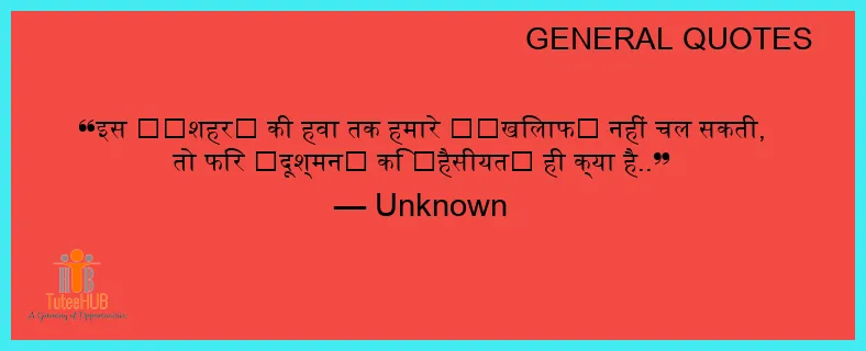 इस ‪‎शहर‬ की हवा तक हमारे ‪‎खिलाफ‬ नहीं चल सकती, तो फिर ‪दूश्मन‬ कि ‪हैसीयत‬ ही क्या है..