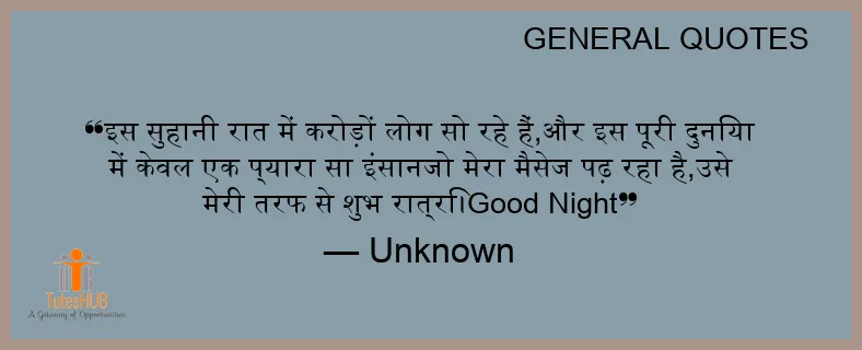 इस सुहानी रात में करोड़ों लोग सो रहे हैं,और इस पूरी दुनिया में केवल एक प्यारा सा इंसानजो मेरा मैसेज पढ़ रहा है,उसे मेरी तरफ से शुभ रात्रि।Good Night