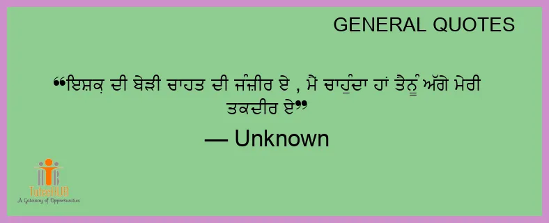ਇਸ਼ਕ਼ ਦੀ ਬੇੜੀ ਚਾਹਤ ਦੀ ਜੰਜ਼ੀਰ ਏ , ਮੈਂ ਚਾਹੁੰਦਾ ਹਾਂ ਤੈਨੂੰ ਅੱਗੇ ਮੇਰੀ ਤਕਦੀਰ ਏ