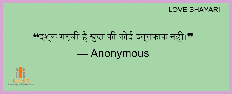 इश्क मर्जी है खुदा की कोई इत्तफाक नही।