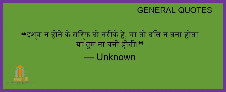 इश्क न होने के सिर्फ दो तरीके हे, या तो दिल न बना होता या तुम ना बनी होती।