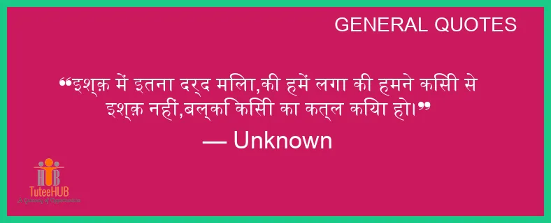 इश्क़ में इतना दर्द मिला,की हमें लगा की हमने किसी से इश्क़ नहीं,बल्कि किसी का कत्ल किया हो।
