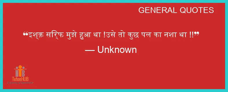 इश्क़ सिर्फ मुझे हुआ था !उसे तो कुछ पल का नशा था !!