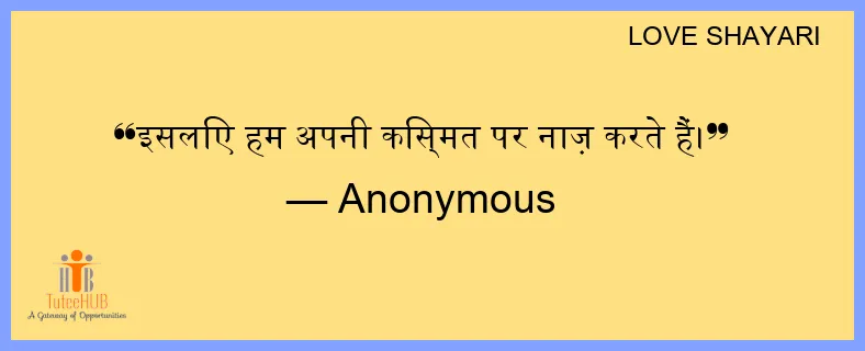 इसलिए हम अपनी किस्मत पर नाज़ करते हैं।
