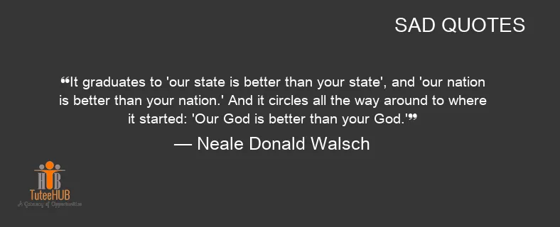 It graduates to 'our STATE is BETTER than your state', and 'our nation is better than your nation.' And it circles all the way AROUND to where it started: 'Our GOD is better than your God.'