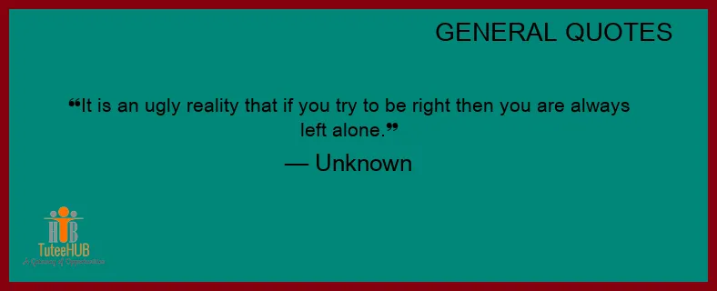 It is an UGLY reality that if you try to be RIGHT then you are ALWAYS LEFT alone.